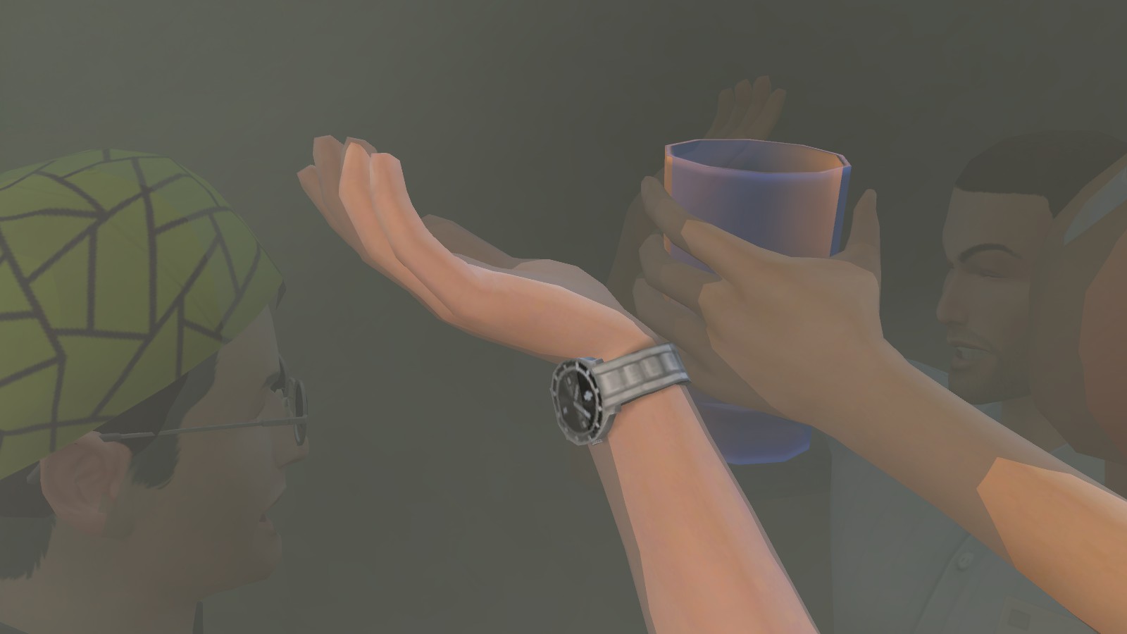 Not sure what is funnier - The two people sitting or your character's face,lol.